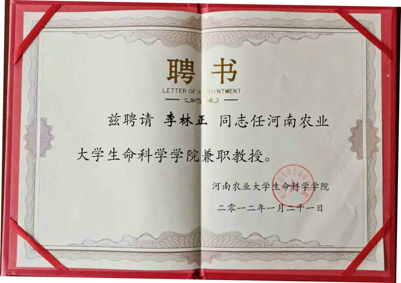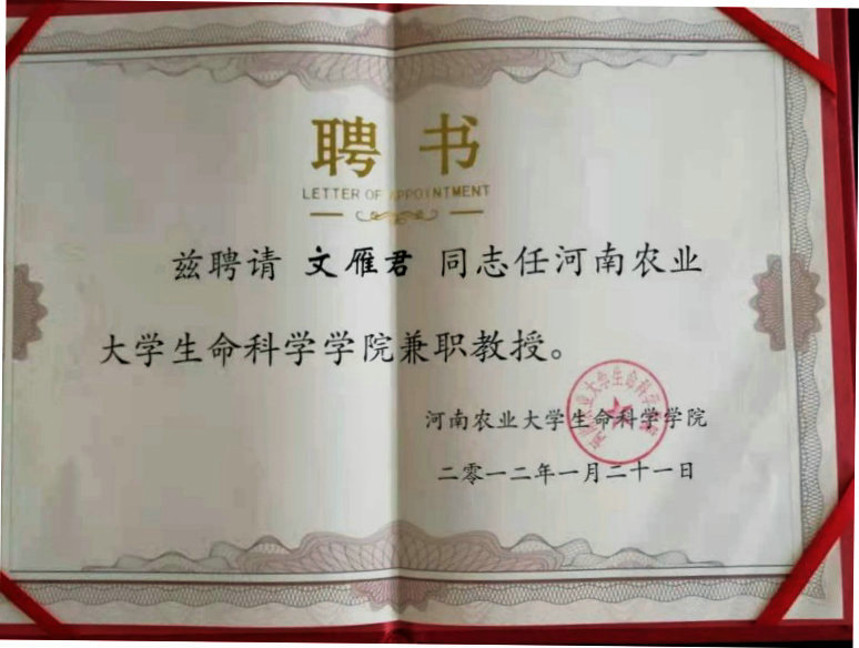 河南農業(yè)大學生命科學學院聘請文雁君、李林正為兼職教授