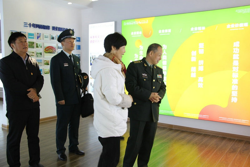 2020年12月16日上午,漯河市軍分區政委熊金敏一行到公司參觀指導工作。謝總陪同參觀并介紹公司發展情況。