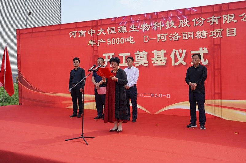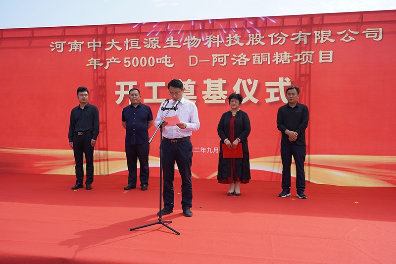 9月1日中大恒源公司舉行D-阿洛酮糖項(xiàng)目開工奠基儀式,項(xiàng)目總投資1.6個(gè)億,建設(shè)周期8個(gè)月。臨潁縣縣委副書記、縣長(zhǎng)李俊偉、縣委常委李紅偉、經(jīng)開區(qū)管委會(huì)副主任邢培忠、中大恒源董事長(zhǎng)文雁君出席儀式并培土奠基。
