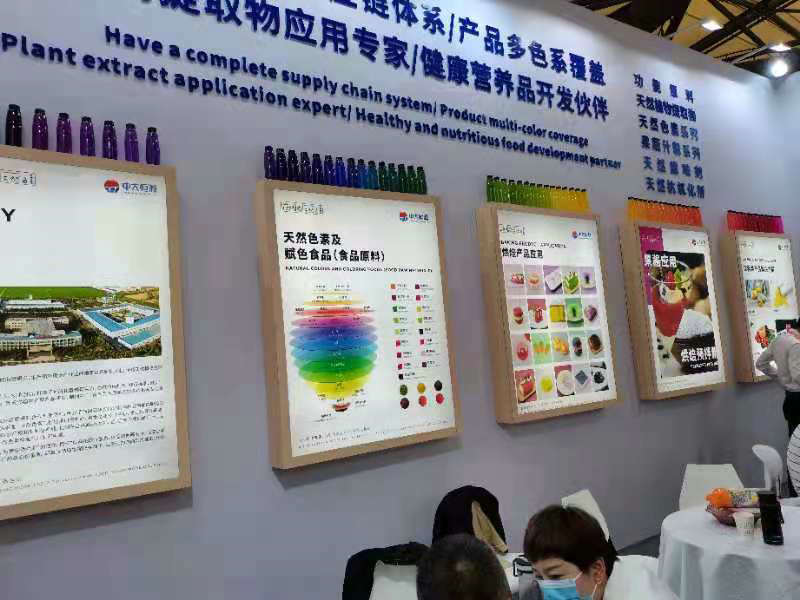 2021年4月27-30日,河南中大恒源生物科技股份有限公司參加在上海新國際博覽中心舉辦的第23屆中國國際焙烤展覽會。公司以“擁有完善的供應鏈體系,產品多色系覆蓋,植物提取物應用專家,健康營養品開發伙伴”為主題,展出了健康食品原料、健康保健產品、天然色素及賦色食品、烘培產品、糖果/巧克力產品、飲料類產品及應用解決方案。展廳內人頭攢動,客流不斷,或饒有興趣的品評產品,或深入洽談合作事宜。